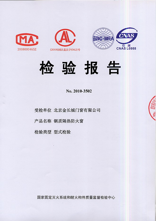 鋼質(zhì)防火窗檢驗(yàn)報(bào)告