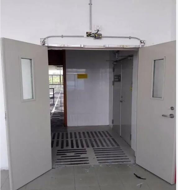 常開式防火門就是平時保持開啟狀態(tài)的防火門。它通常由防火門本體、閉門器和防火門釋放裝置三部分組成。防火門可以是符合GB12955-2008《防火門》的鋼質(zhì)防火門、木質(zhì)防火門、玻璃防火門;閉門器是符合GA93-2004《防火門閉門器》緩沖液壓式防火門閉門器,防火門釋放裝置符合Q/SZBC01&2007《常開防火門釋放裝置》。